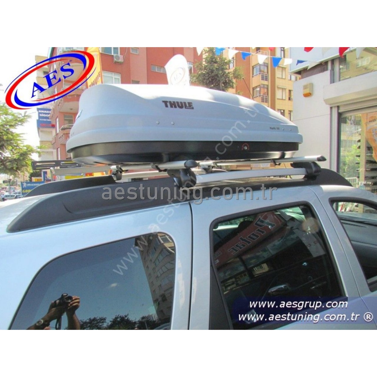 DACİA DUSTER PORT BAGAJ THULE PACİFİC 100 GRİ 330 LİTRE '' TAŞIYICI SİYAH ARA BAR DAHİL ''