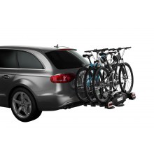 Technical specifications Max number of bikes 3 (4) Load capacity 60 kg Max bike weight 25 kg Dimensions 126 x 74 x 80 cm Folded dimensions 103 x 74 x 35 cm Weight 18.9 kg Fits frame dimensions 22-80 mm Max tire width 3 in Max wheel size (diameter) 29 in Max wheelbase 1300 mm Detachable frame holders  ✓  Distance between bikes 19 cm Carbon frame compatible  ✓  Adapter/s required: Thule AcuTight Knob, Thule Carbon Frame Protector Wheel mounting on adjustable holders Pump buckles Tilt function (with bikes)  ✓  Fits cars with exterior spare tyre  ✓  Adapter/s required: Thule VeloCompact Spare Wheel Adapter Rear lights  ✓  Power connector 7-pin One Key System compatible  ✓  Lockable bike-to-rack  ✓  Lockable rack-to-vehicle  ✓  Color Black/Aluminium Model number 927002